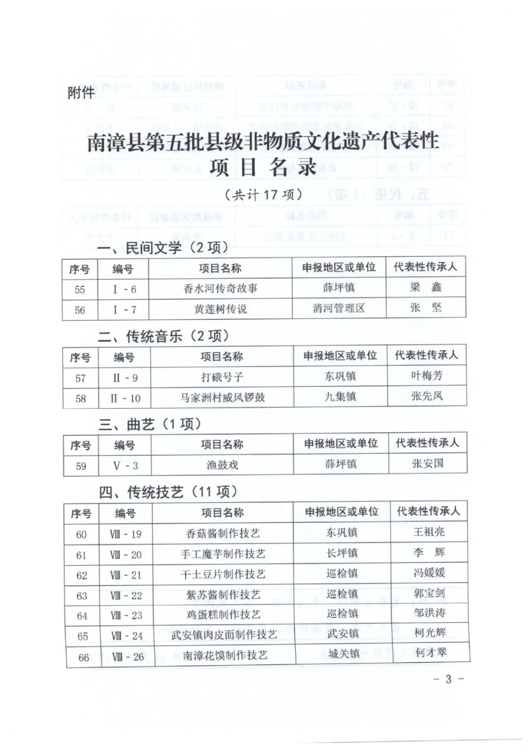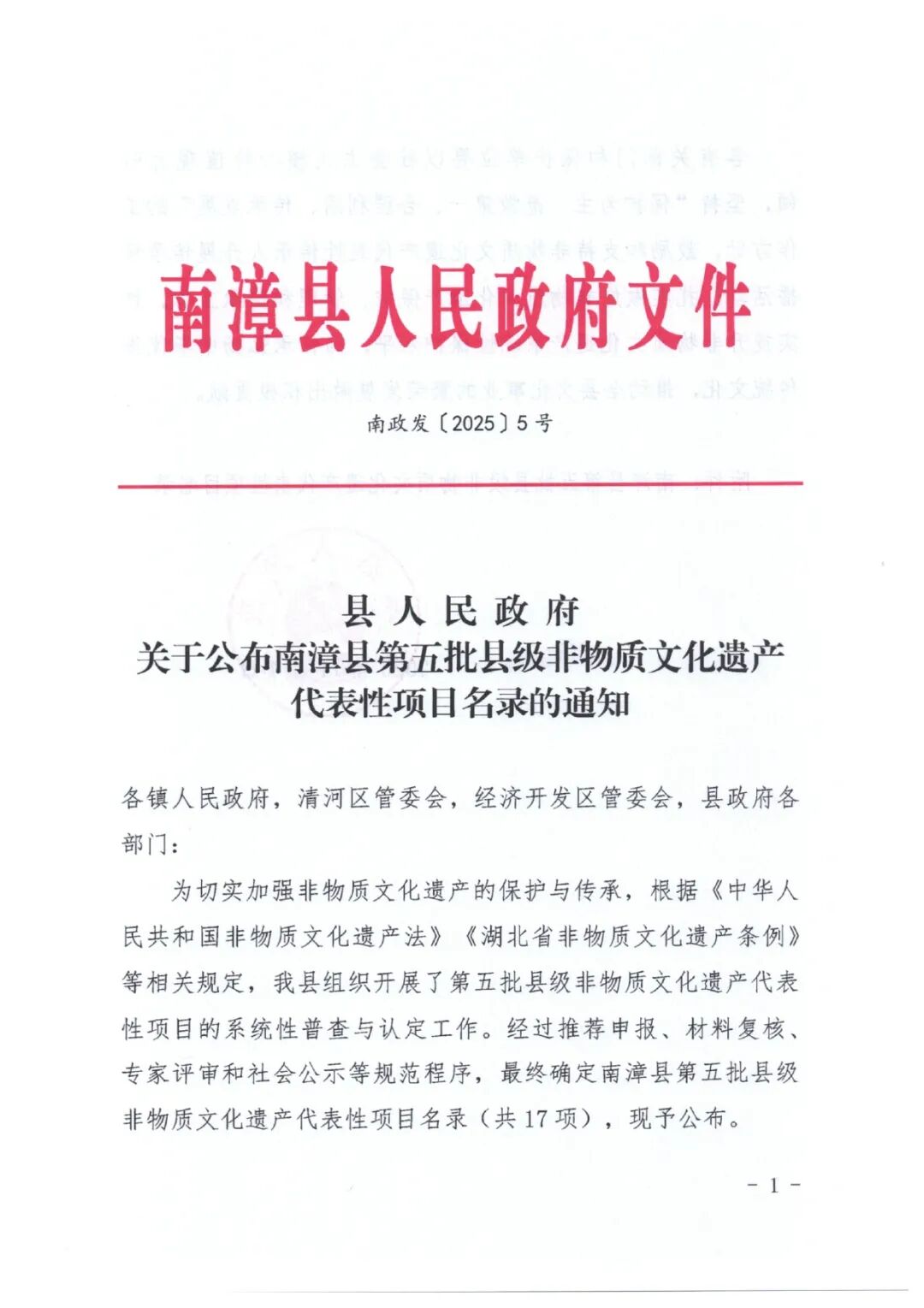 点击蓝字·关注我们 近日,南漳县人民政府公布了 第五批县级非物质文化遗产代表性项目名录 共有17项县级非遗项目 快来看看 有没有你熟悉的项目 编辑:刘可影 初审:董志强 终审:郭海伟 南漳县文化馆