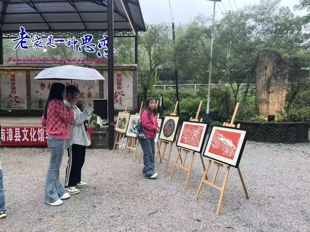 此次活动还展出了省级非物质文化遗产——南漳剪纸,展出的有套色剪纸春、夏、秋、冬,还有其他包括人物,山水等图案约30余副,内容由省级非遗代表性传承人李秀玲创作而成,吸引了无数游客在展台前驻足欣赏,不少游客和文化馆的老师进行亲切交流,在旅游的同时还可以看到如此精美的非遗展品,促进了非遗技艺的宣传与推广。